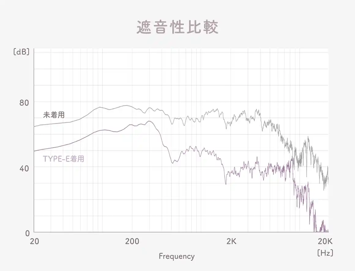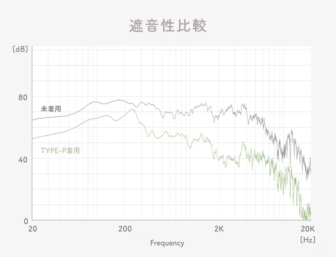 ストレスを感じやすい尖った音は角が取れて柔らかく、さらに、低い音から高い音までバランス良く遮音いたします。 |