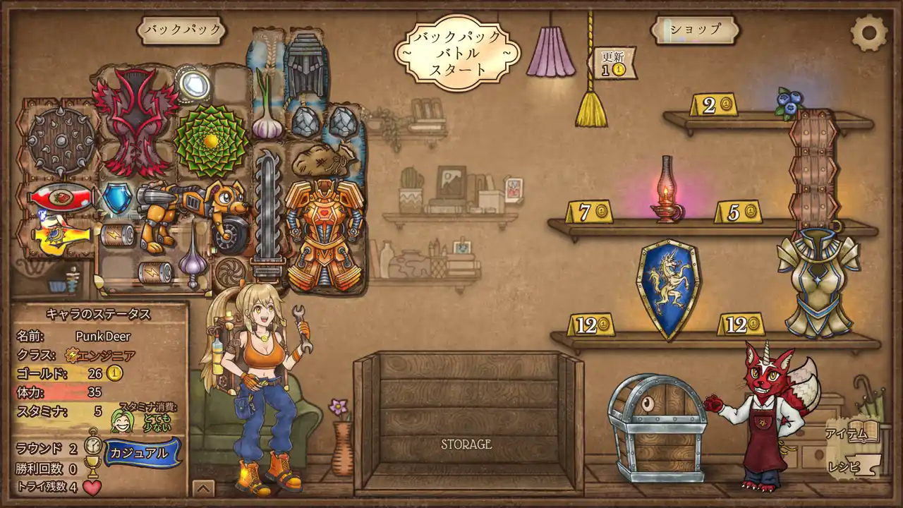 『バックパック・バトル』では、アイテムがぎっしり詰まったバックパックを使って戦います。何を買うのか、そしてそれをどう配置するのかが重要です。賢くアイテムを配置すればするほど、あなたは強くなれます! |