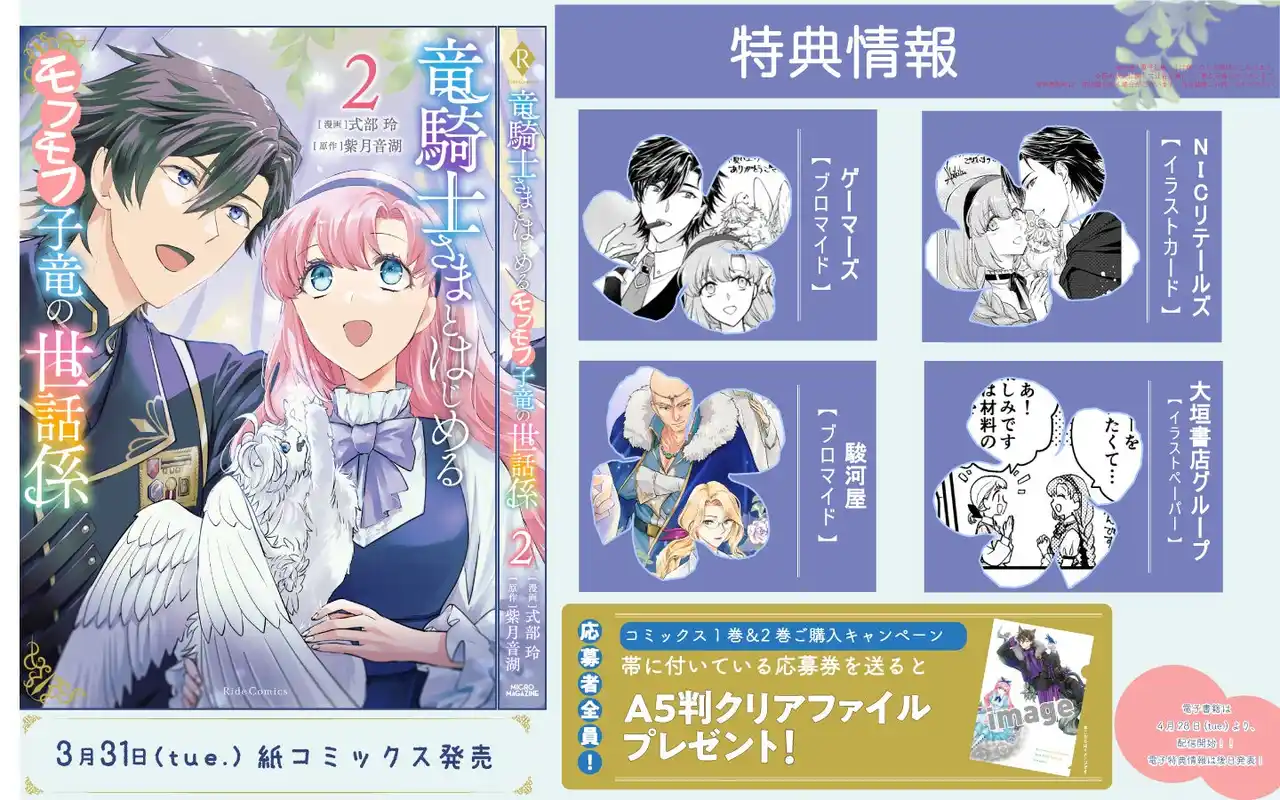 | マイクロマガジン社(東京都中央区)は、2026年3月31日(火)に、コミックライドivy『竜騎士さまとはじめるモフモフ子竜の世話係 2』(漫画:式部玲 / 原作:紫月音湖)を発売します! | ||||||||||||||||||||||||||||||