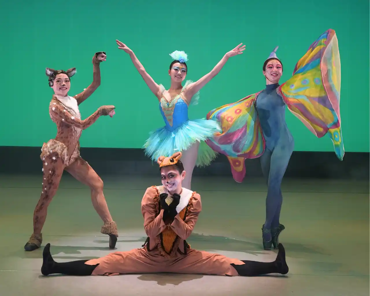 池本純夏(アライグマ 役)、宮下夕鶴(鹿 役)、徳光小麦(鹿 役)、久保田花鈴(青い鳥 役)、行武日陽里(蝶々 役)/森の動物たち |