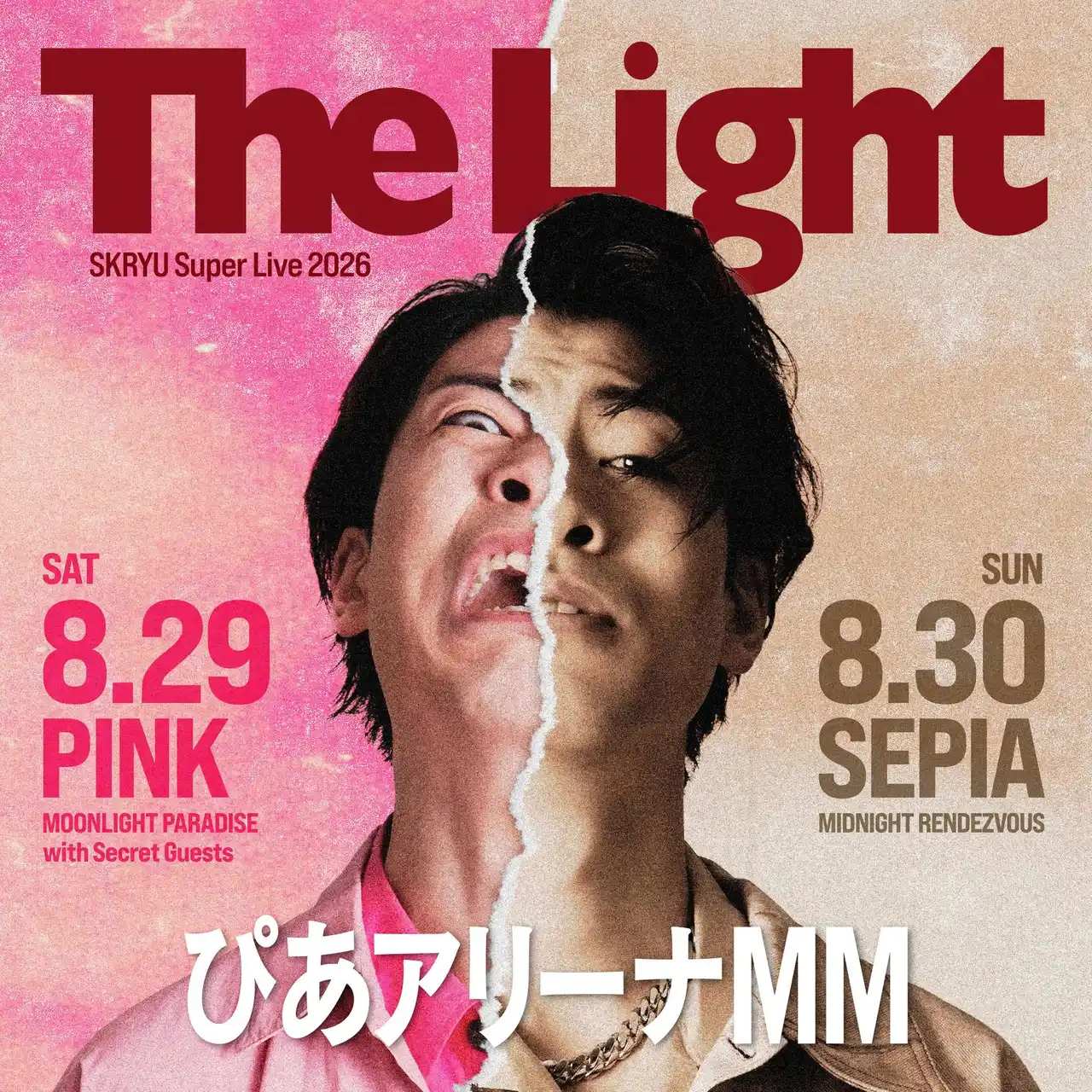 | SKRYU Super Live 2026「The Light」と題した本ライブは2日間開催となり、8/29(土)が「PINK -Moonlight Paradise- with Secret Guests」、8/30(日)が「SEPIA -Midnight Rendezvous-」と題し、それぞれサブタイトルが設けられ開催日ごとに異なる演出が期待できる事となる。 | |||