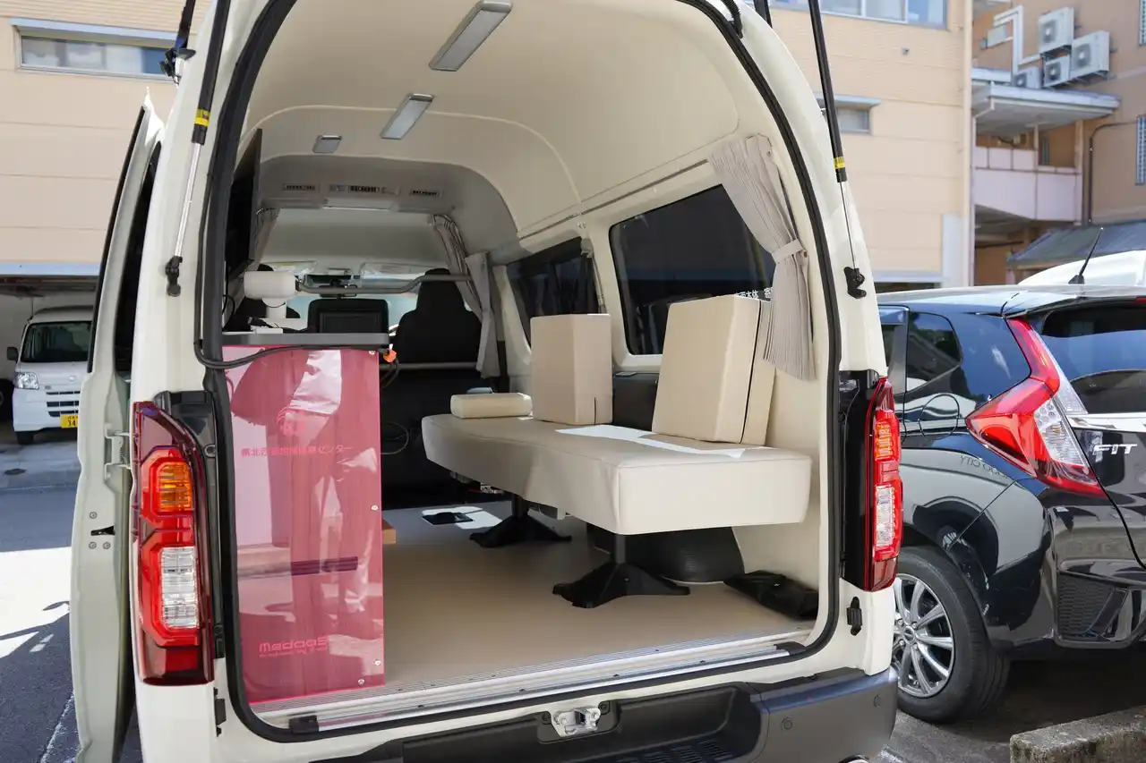 ベース車両にトヨタ ハイエース(標準ナローハイルーフ・4WDディーゼル)を採用。看護師でも運転できるコンパクトさと6人乗りの広い室内空間を両立した、医療現場のあらゆるニーズに応える一台です。 |