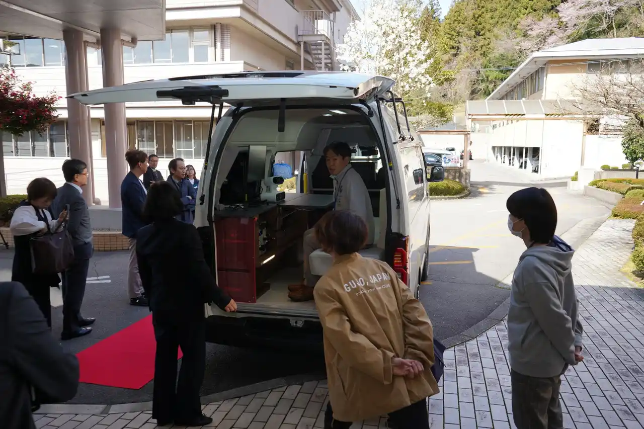 2026年3月27日(金)、岐阜県郡上市役所防災センターにて、「医療MaaS車両(MedaaS)」の納車式典が執り行われました。深刻な医師・看護師不足と高齢化が進む山間地域・郡上市において、患者のもとへ医療を届ける「動く診察室」として、国保白鳥病院を拠点に運用が正式スタートします。式典には郡上市長・山川弘保氏をはじめ、行政・医療・大学・自動車メーカーなど各分野の関係者が一堂に会しました。経済産業大臣・赤澤亮正氏、岐阜県知事・江崎禎英氏からは祝辞が寄せられ、地域医療の新たな幕開けを祝いました。 |