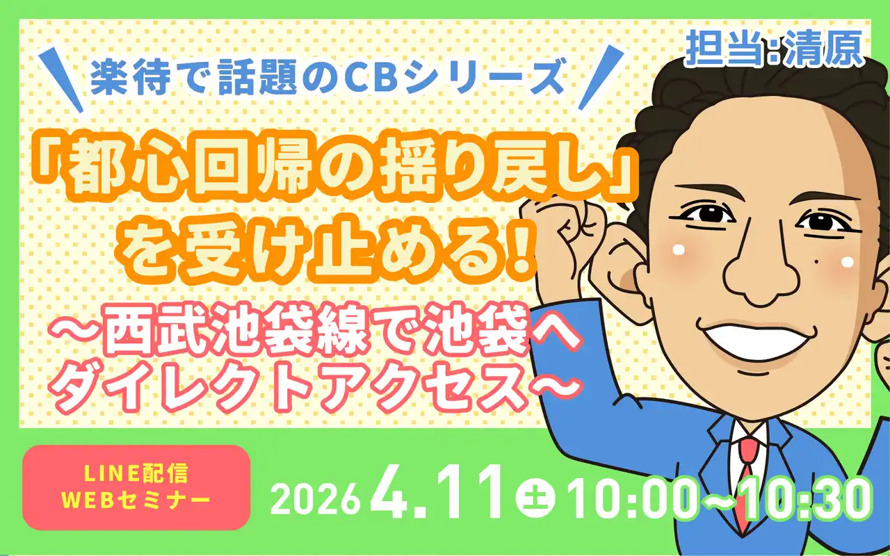 | 不動産資産管理会社の三和エステート株式会社(本社:福岡市博多区博多駅南1丁目、代表取締役社長:田代 雅博)は、オリジナル企画アパート「CBシリーズ」において、埼玉県入間市での初進出を記念し、建築中物件を紹介するオンラインLIVEイベントを2026年4月11日(土)に開催いたします。 | |||||||||