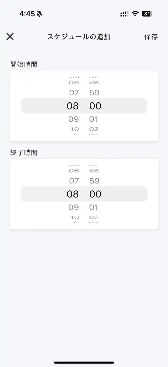 | アプリで開始・終了時刻を設定するだけで、 | |||