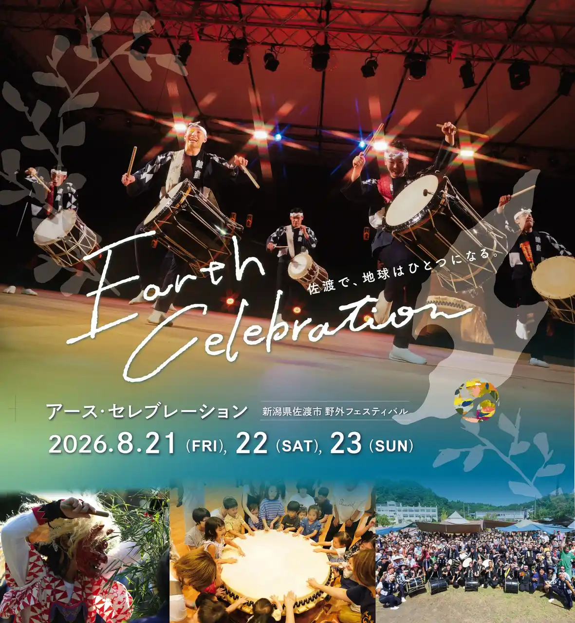新潟県・佐渡島にて、今年で39年目を迎える歴史ある野外フェスティバル「アース・セレブレーション(EC)」。この夏、8/21(金)、22(土)、23(日)の3日間開催いたします。