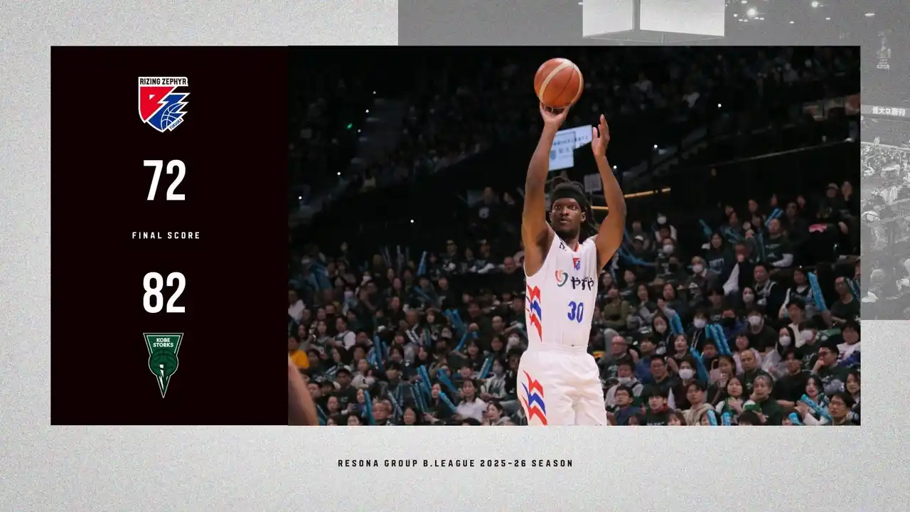 | 2026年3月28日(土)に開催した、りそなグループ B.LEAGUE 2025-26 シーズン【ライジングゼファーフクオカ vs.神戸ストークス】戦は、“福岡 72-82 神戸”で福岡の敗戦となりました。 | |||