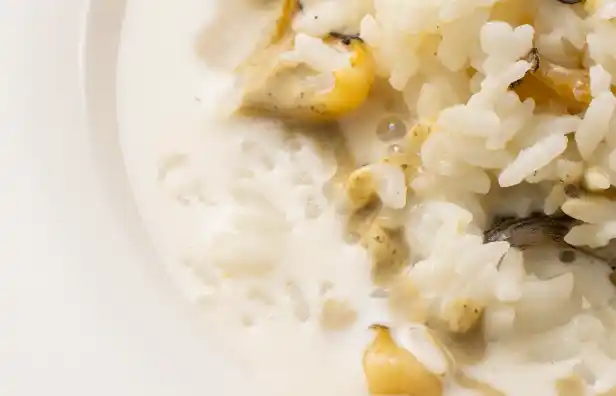 締めは、あわびと野菜のうまみが溶け出しただしを使ったリゾットです。だしに重なった素材のうまみを最後まで味わえる構成とすることで、天然利尻あわびのおいしさを一品を通して余すことなく堪能できる内容にしています。 |