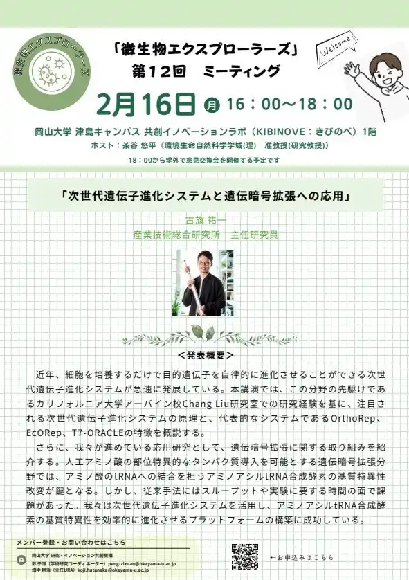 | ・【岡山大学】異分野融合と拠点形成を志向した「微生物エクスプローラーズ」第11回ミーティングを開催 | ||||