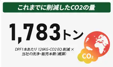 当社はアスエネ株式会社との連携によるCFP(カーボンフットプリント)算定を完了しており、リビルトDPFは新品比約60%のCO2削減効果が科学的に立証されています。 |