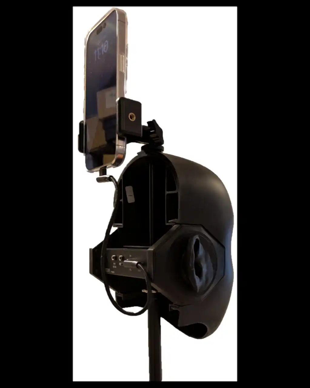 | バイノーラル録音において、顔表面の反射・回折・遮蔽は音像定位に大きく影響します。そこで当社は、多くの試作を重ね、持ち運びやすさはそのままに、ダミーヘッドが持つ音響的メリットだけを付加できる拡張ユニットとして「バイノーラル・フェイス W-FACE1」を新たに開発しました。 | |||||||||