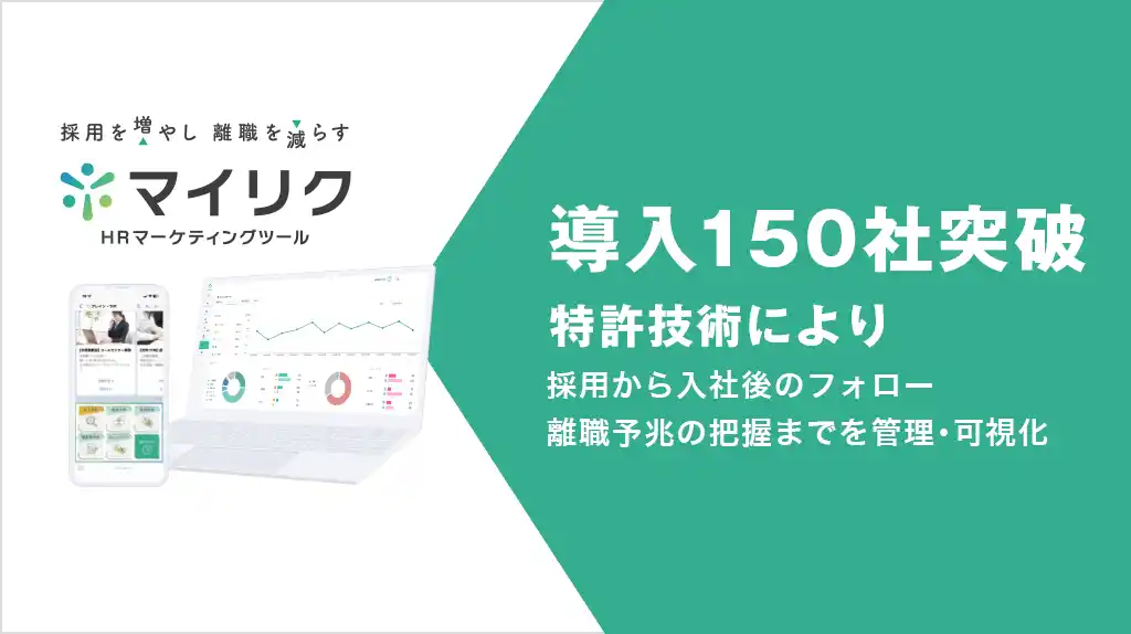| 「マイリク」は、採用活動から入社後の定着支援までを一貫して管理する「集客・人材定着管理システム」に関して、独自技術(特許第7734919号)を保有しています。昨今の人手不足を背景に、単なる「採用支援」に留まらない、本技術を活用した「定着・離職防止」への有効性が多くの企業で確認され、このたびの導入拡大へと繋がりました。 | ||||||||||||