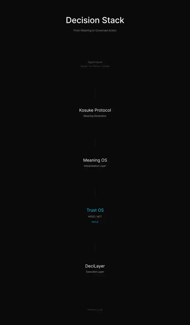 | AIは意思決定を生成できるようになりました。しかし、それを制御する構造は、まだ十分にはありません。Decision Stackは、「止める」ことを設計に含めるアーキテクチャです。これから必要なのは速さだけではありません。「どこで止まれるか」、その設計だと考えています。 | ||||||||||||||