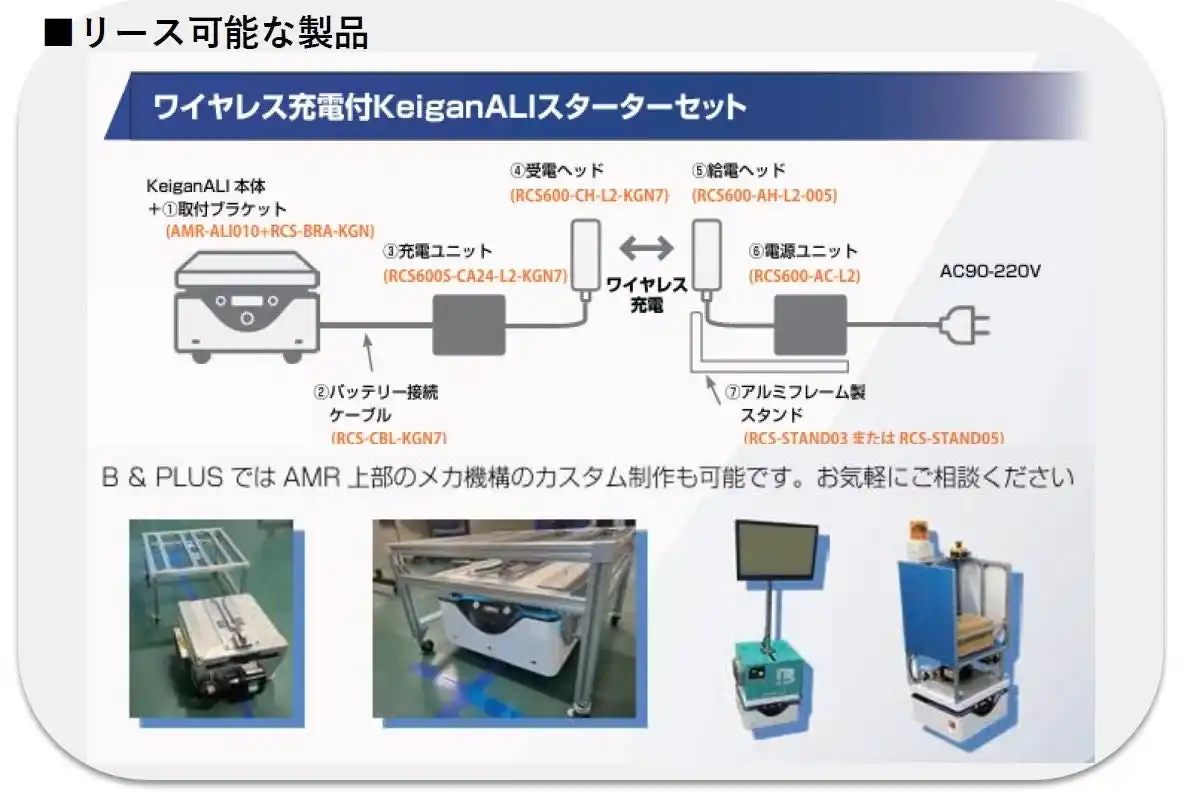 本サービスは、AMR本体とワイヤレス充電システムをセットにしたリースモデルです。 リース会社が機器を購入し、ユーザーは月額料金で利用できます。 |