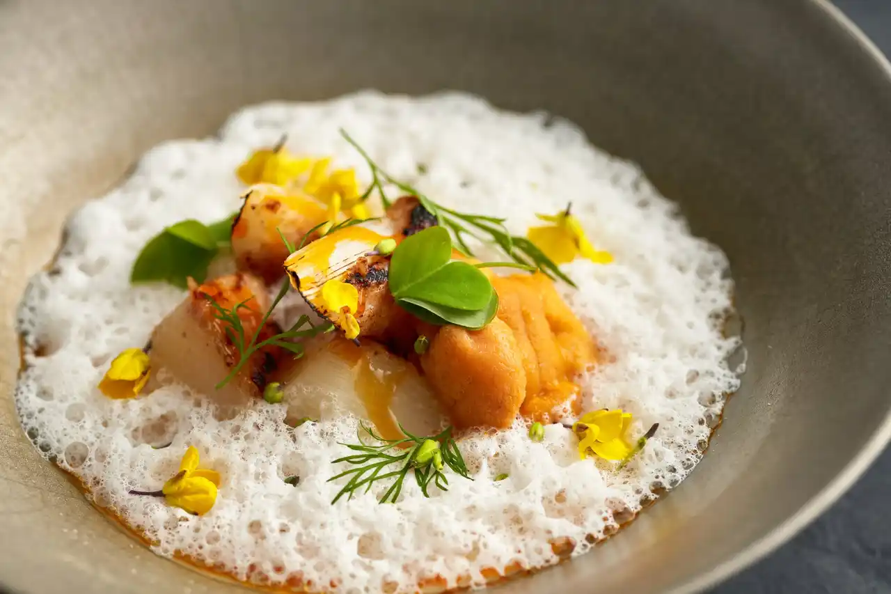 「足すうまみ(素材の相乗効果)」と「引くうまみ(素材の純粋さ)」をフレンチと和の技法で表現したキュイジーヌコース。だしや発酵食品でコクを足し、昆布やかつお節で素材の香りと旨味を引き出す、ストーリー性のある食体験をお愉しみください。 |
