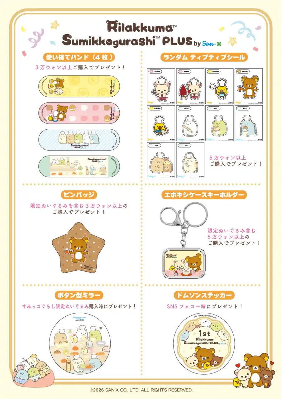 「Rilakkuma Sumikkogurashi PLUS by San-X」公式SNSにてご案内いたします。 X:https://x.com/RKSG_PLUS_KR Instagram:https://www.instagram.com/rksg_plus_kr/