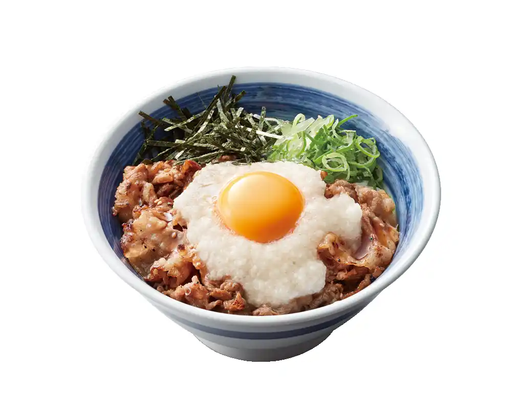 | 厳選した熟成牛バラ肉やハラミを香ばしく焼き上げ、たっぷりの月見とろろを合わせました。鰹節の旨味と香りが効いた特製だれと一緒に、お召し上がりください。 | |||||||||