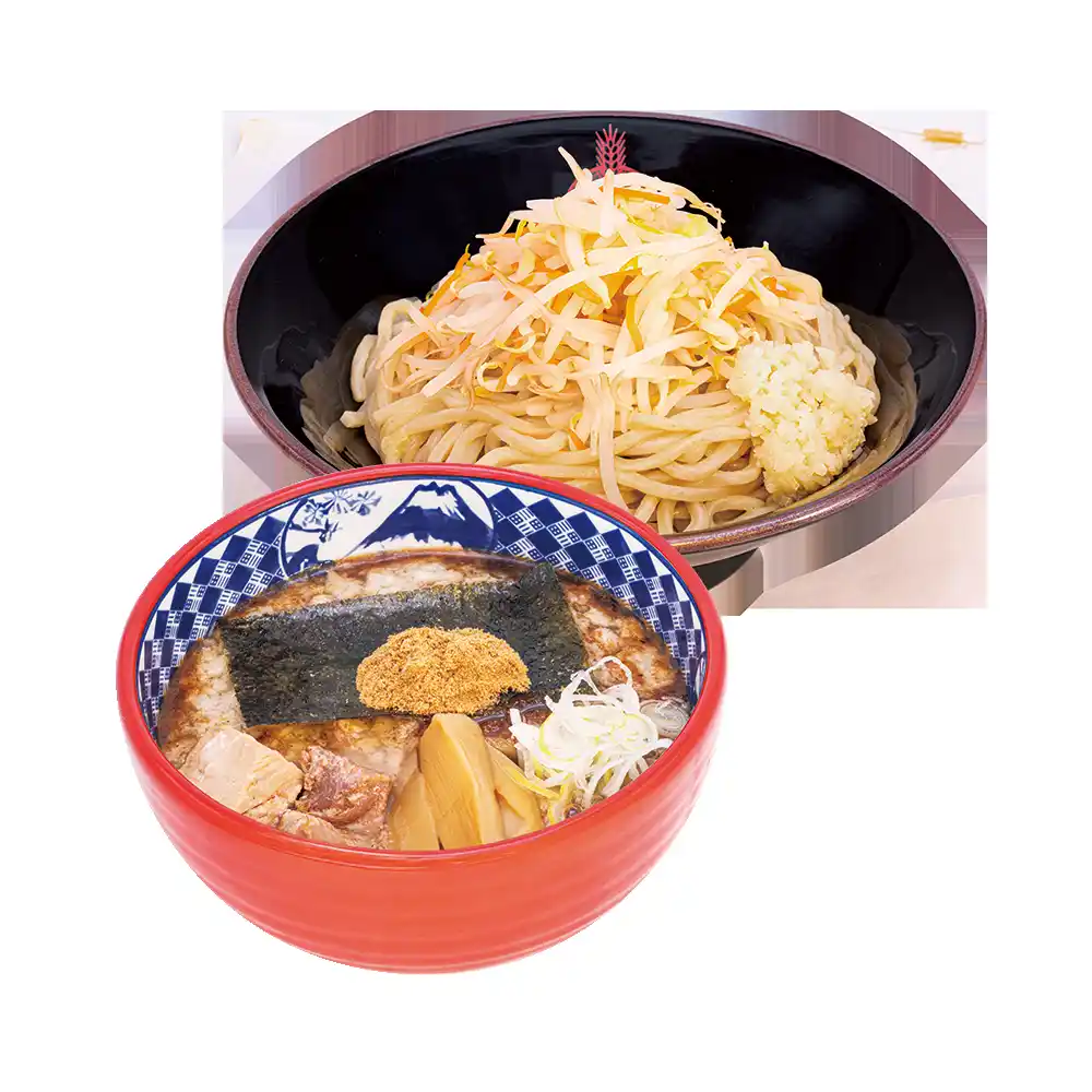 濃厚な豚骨魚介スープに背脂の甘みと旨み、ニンニクの香りを重ね、さらに温野菜を合わせることで、濃厚な味わいの中にほどよいアクセントを加え、最後まで飽きずにお楽しみいただけます。 |
