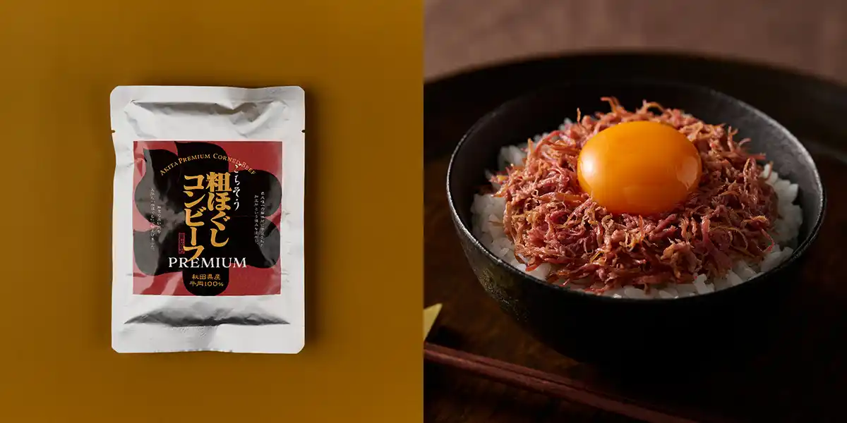 秋田県産牛を100%使用し、牛の解体から加工までを一貫して行う「解体所直結」の鮮度と品質が強みです。肉本来の旨みを感じられるよう「粗ほぐし」の食感にこだわり、たっぷりの牛脂で濃厚なコクを引き出した、まさに“ごちそう”と呼ぶにふさわしい逸品です。