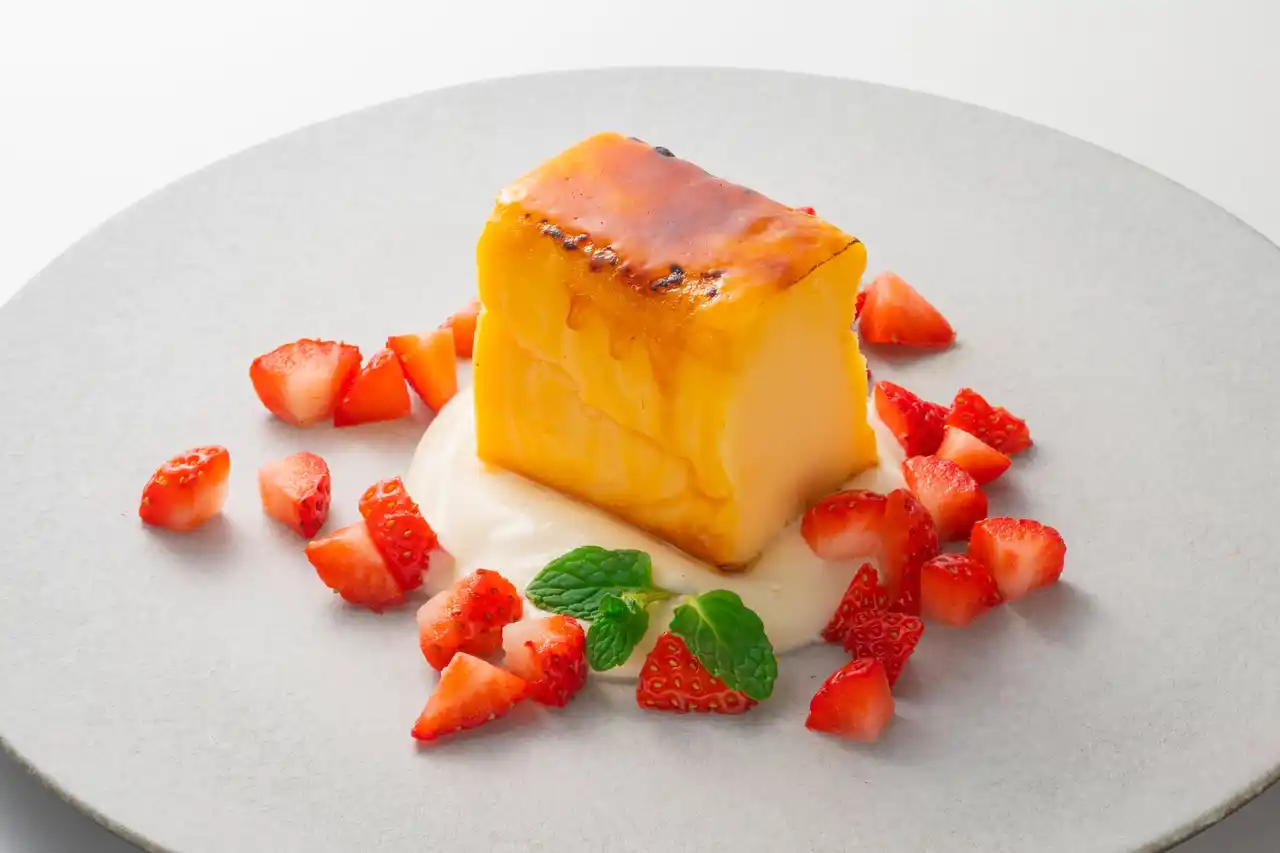 パティシエが目の前で仕上げるスペシャルデザートもご用意。コクと香ばしさが重なり合う「キャラメリゼバスクチーズ ミルクソース イチゴ添え」と、カリッと香ばしく仕上げたブリュレに甘酸っぱいイチゴを合わせた「ストロベリーブリュレパフェ」を、出来たてならではの美味しさとともにお楽しみいただけます。 |