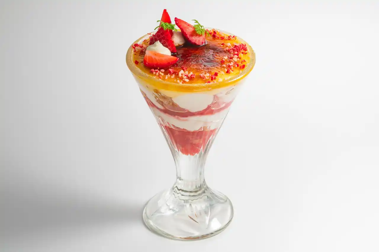 スペシャルデザート「ストロベリーブリュレパフェ」 |