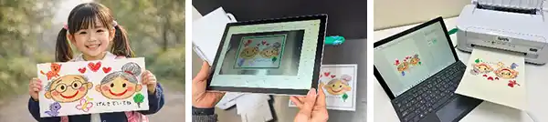 現物をその場で取り込み&その場でプリント:雑誌の切り抜きやお子様が描いた絵などを、「カメラスキャン(自動補正機能)」カメラで取り込むとサイズが自動補正されプリントできます。デジタルデータを持たないお客様への柔軟な対応も可能です。 |