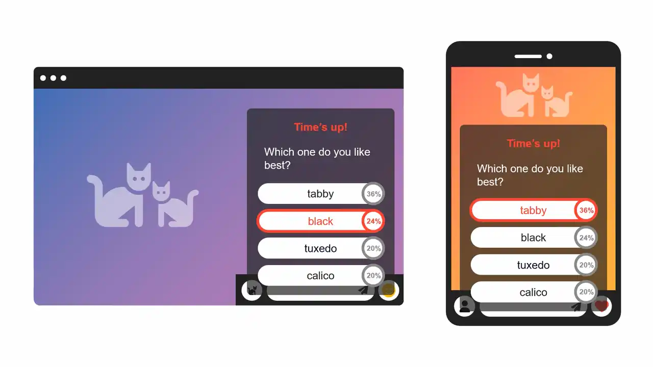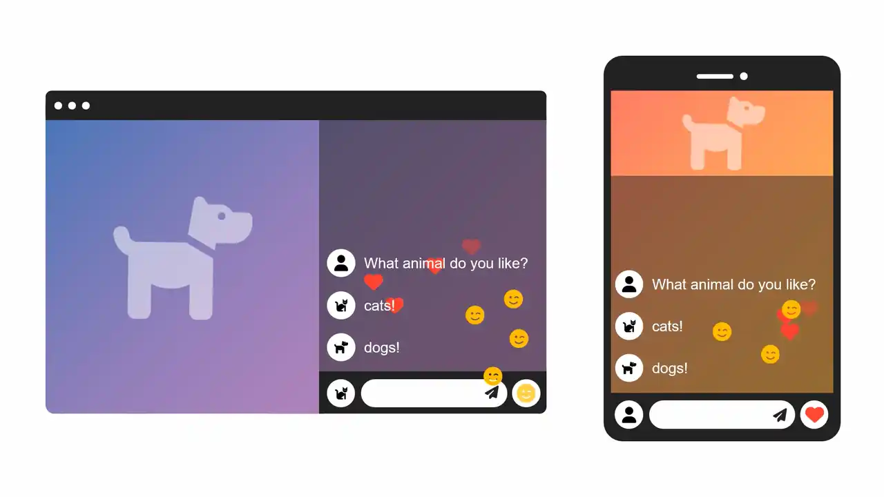 ユーザーコメント/リアクションスタンプ、連打ゲーム/PK(連打対戦)、リアルタイムアンケート/クイズ、応援メッセージ&エフェクトなどの豊富なリアクション/コミュニケーション機能を持ち、視聴者のリアクションをリアルタイムに可視化。 |