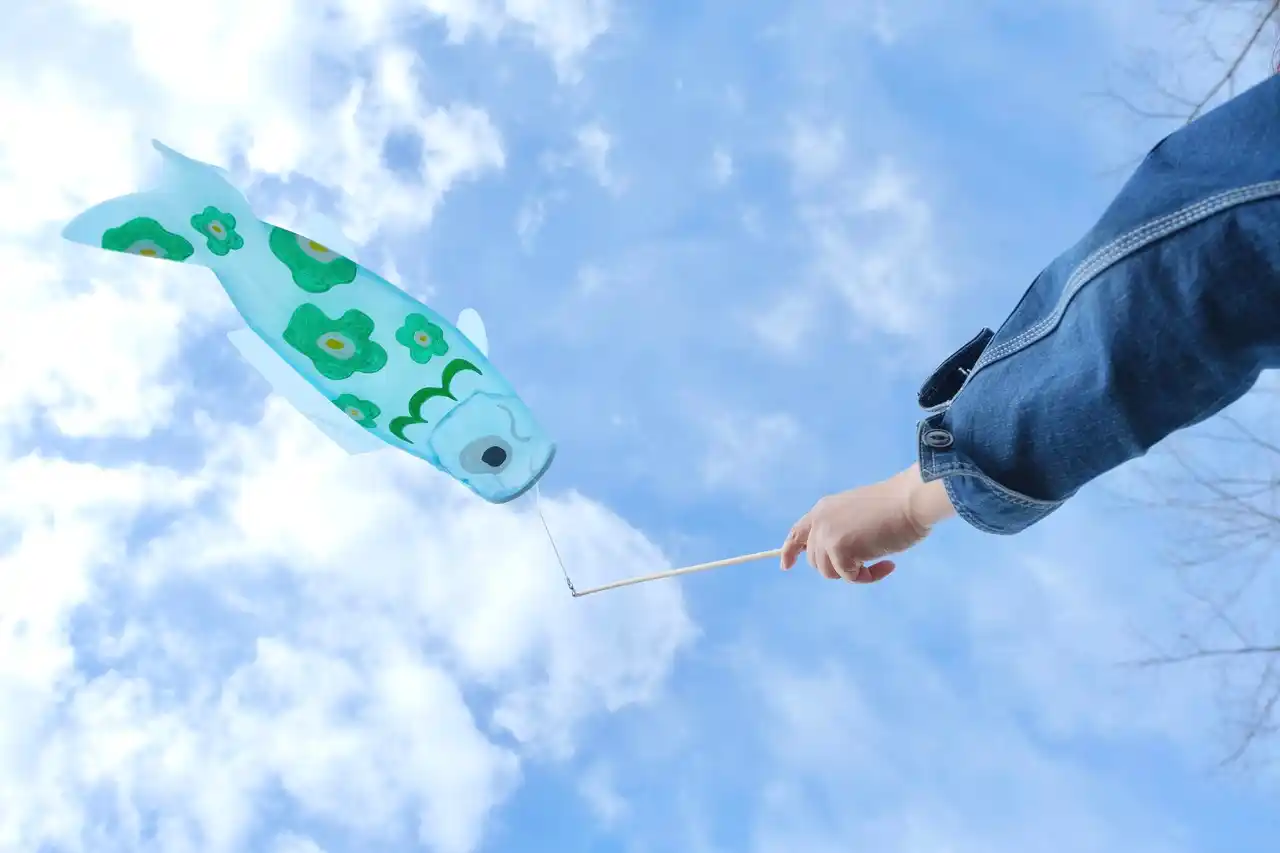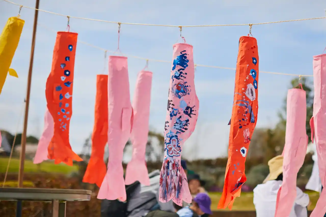 かわいいサイズのこいのぼりにお絵描きして春の心地よい風が吹く園内で持ち歩こう。 |