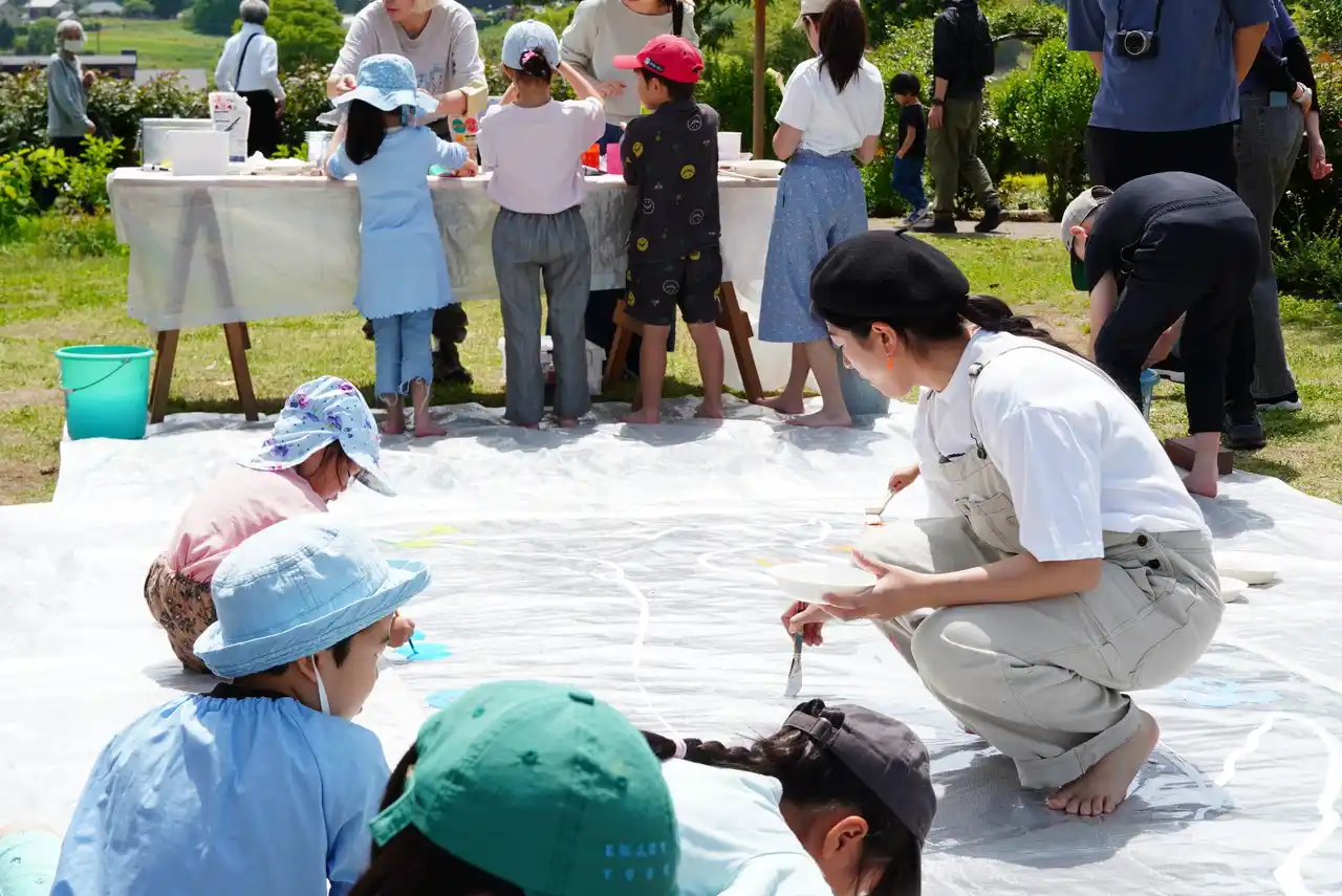 絵本作家・小林由季氏と一緒に、自然の中で大きな透明ビニールに絵の具で絵を描くワークショップ。※事前予約制となります。 |