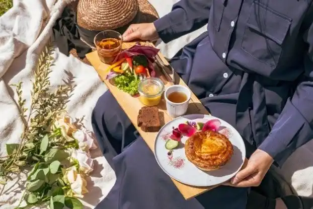 新鮮な八郷のめぐみを「束」でいただくブーケサラダやメイン料理、スープとお菓子、ドリンク5品のランチセット。メイン料理は、弓豚のグリエ・欧風スパイスカレー・ミートパイの全3種。 |