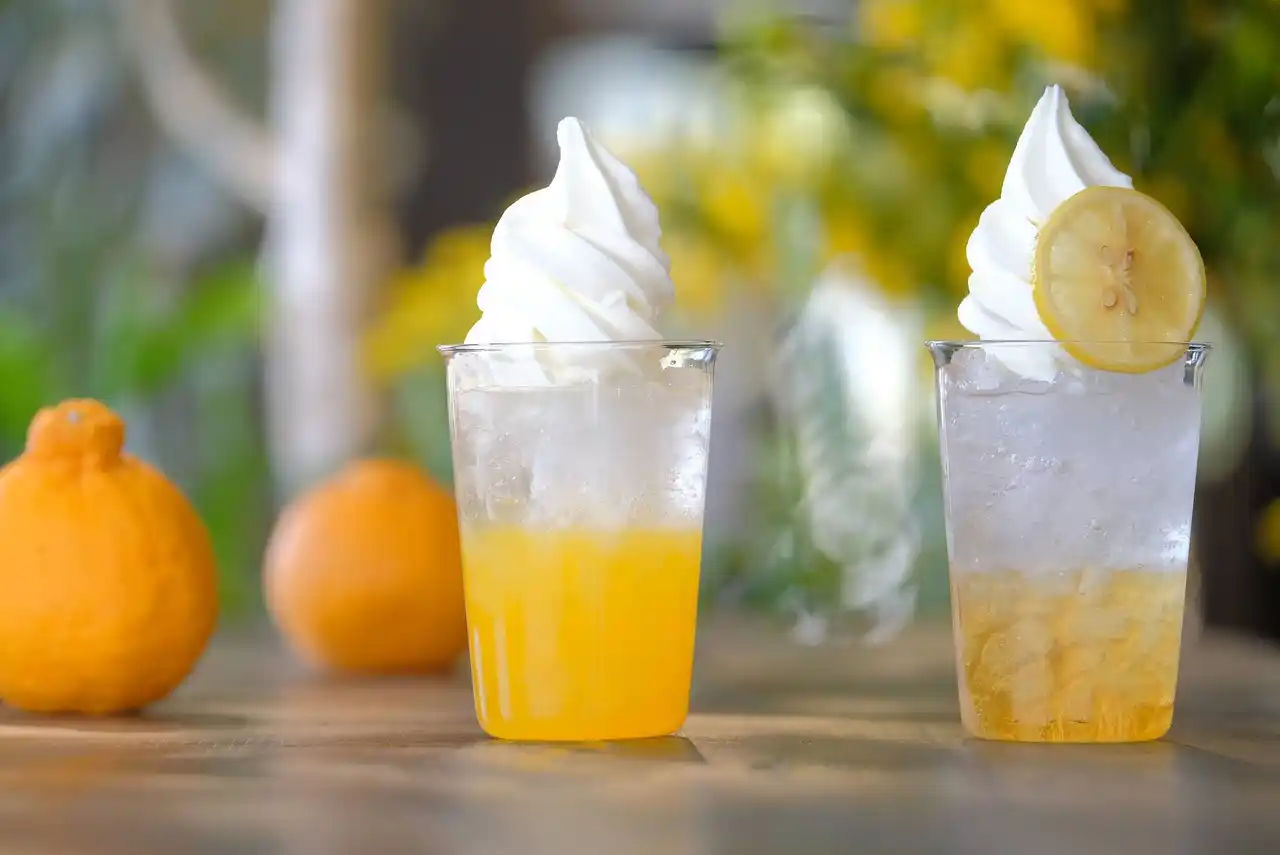 園内では、メインが選べる束ランチセットや地元の柑橘を使った爽やかドリンク、手作りスイーツなど青空の下で楽しめるグルメをご用意。園内にあるカフェYuitではコーヒーマシンを一新し、これまで以上に雑味のないクリアな味わいにリニューアルします。 |