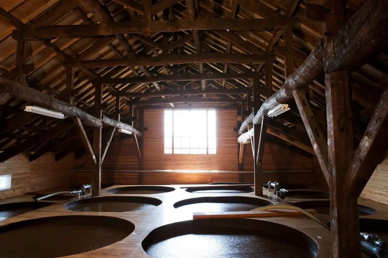 一方で木桶仕込みは、全国生産量の約1%にとどまっており、非常に希少な製法です。 |