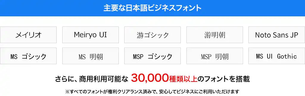 ●主要なビジネスフォントに加えて、3万種類以上のフォントを搭載 |