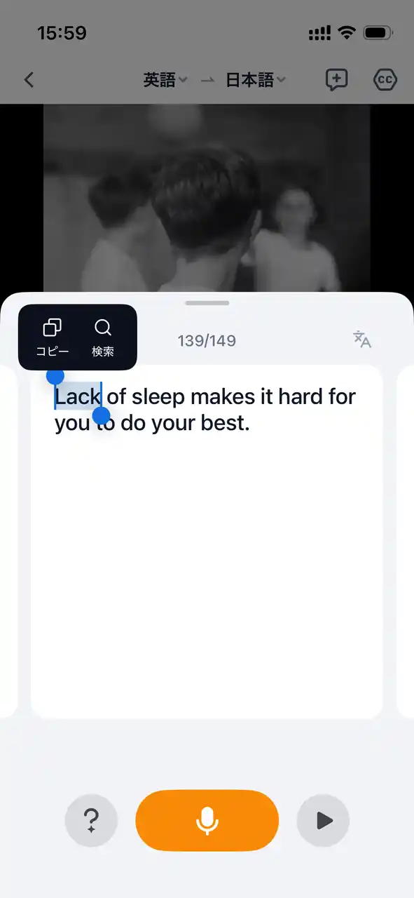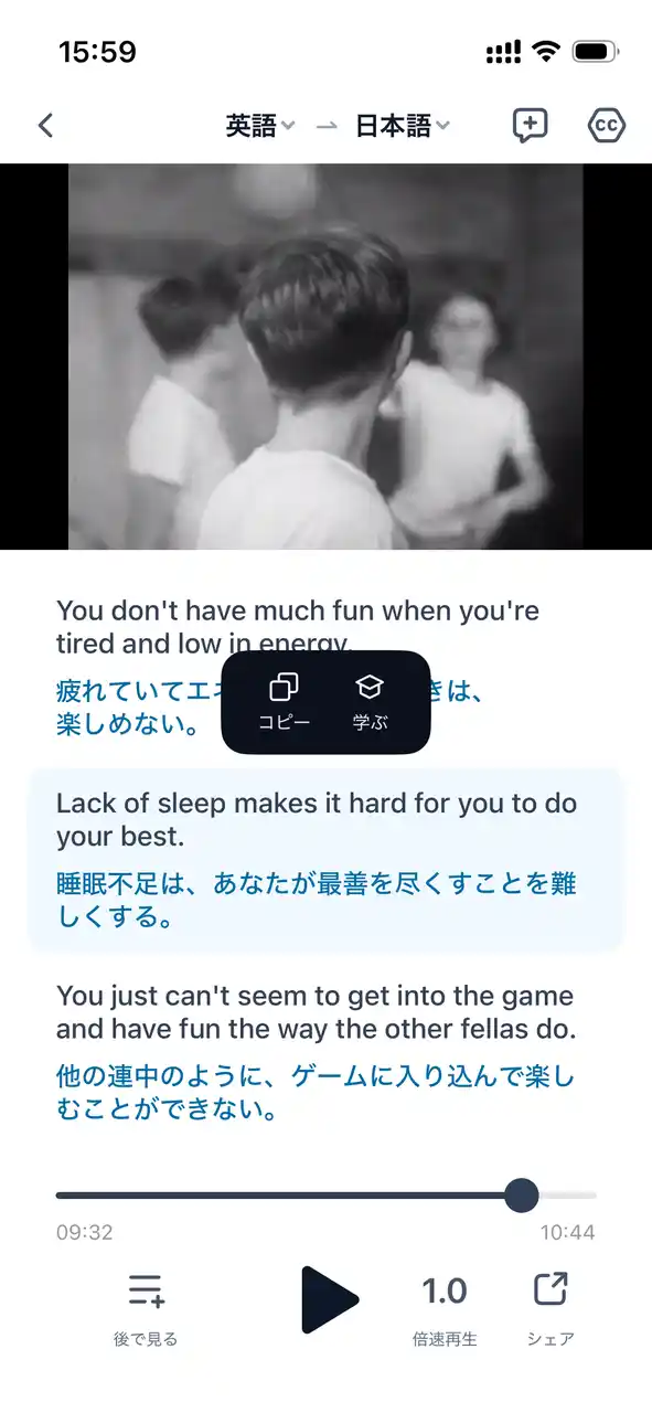 動画翻訳や音声翻訳の利用後、字幕を長押しするだけで学習モードに入ることができます。対話翻訳では、翻訳バブルを長押しすることで、該当文の学習画面へ即座に移行できます。 |