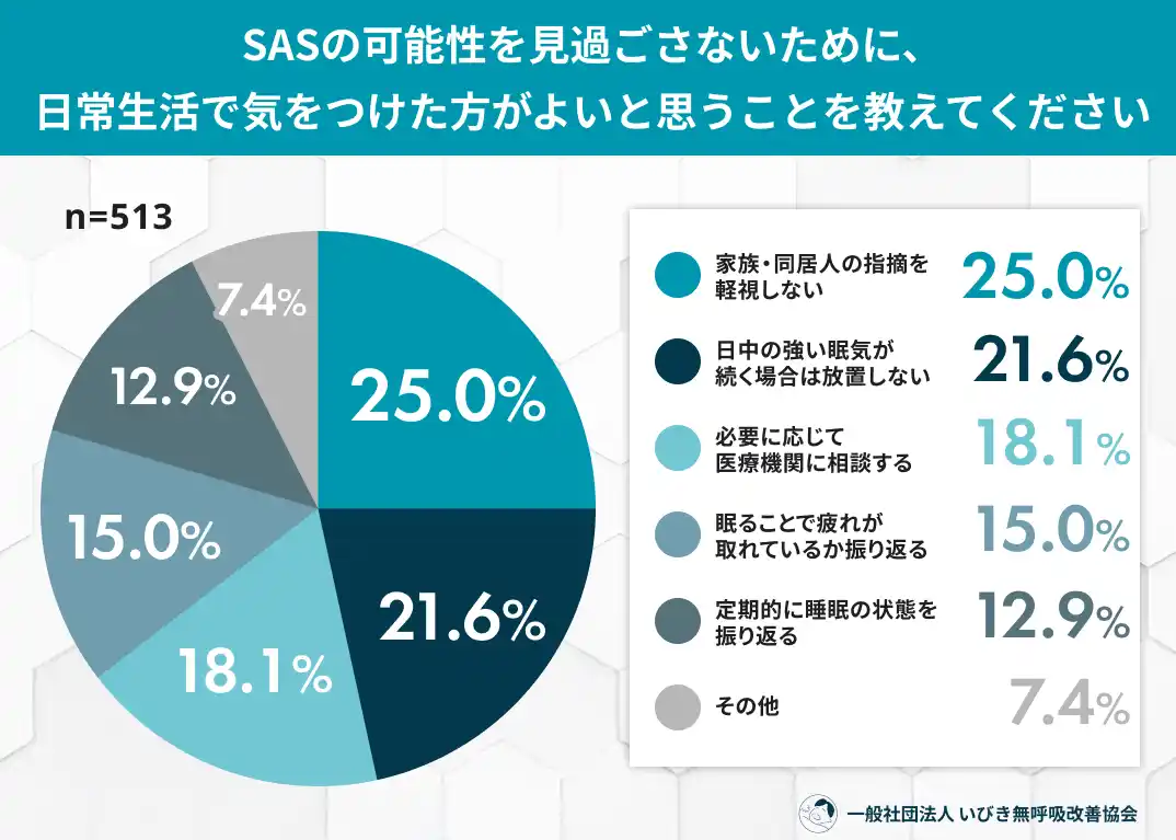 SASの可能性を見過ごさないために最も重要だと思うことは「家族・同居人の指摘を軽視しない」25.0% |