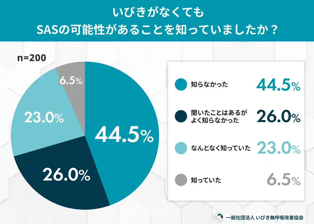 約4.5割(44.5%)が「いびきを伴わないSAS」の存在を「知らなかった」と回答 |