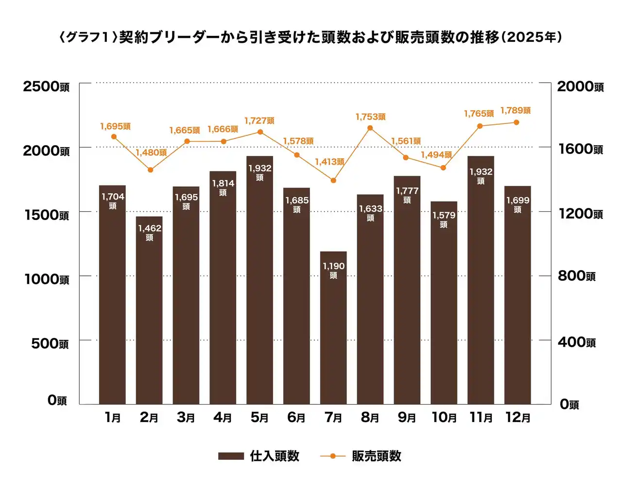 ・契約ブリーダーから引き受けた頭数および販売頭数 |
