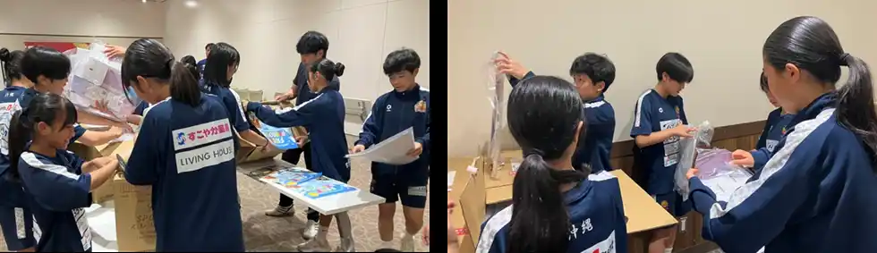【来場者とFC琉球さくらaleとの共同で梱包作業】 |