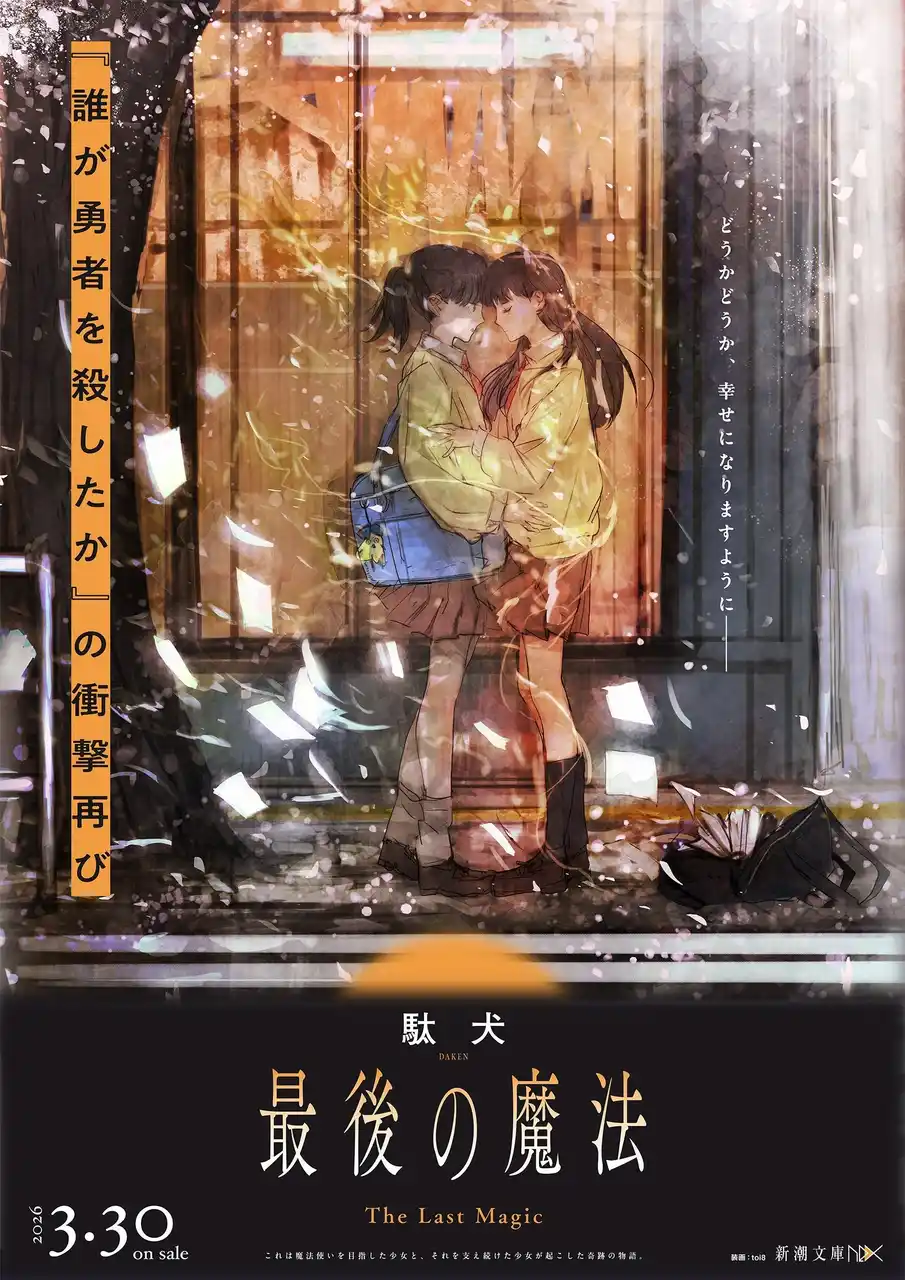 シリーズ累計30万部を突破し、「このライトノベルがすごい! 2025」の新作部門第1位にも輝いた『誰が勇者を殺したか』をはじめ、『モンスターの肉を食っていたら王位に就いた件』や『死霊魔術の容疑者』など、今最も注目を集める著者・駄犬が新潮文庫nexに登場。魔法使いが存在する現代で二人の少女が起こした奇跡を描く『最後の魔法』を3月30日に刊行いたします。