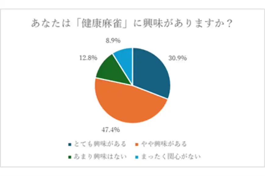 「健康麻雀を知っている」と回答したのは61.8%でした。一方で「知らなかった」も38.2%となり、一定の認知はあるものの、まだ浸透の余地もあることがわかりました。また興味については「とても興味がある」30.9%、「やや興味がある」47.4%で、合計78.3%が関心を示しました。 |