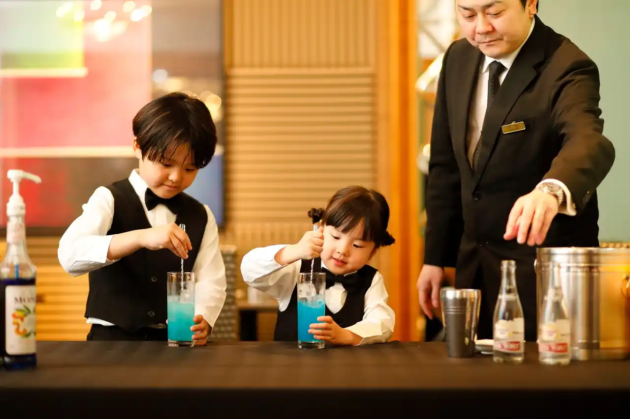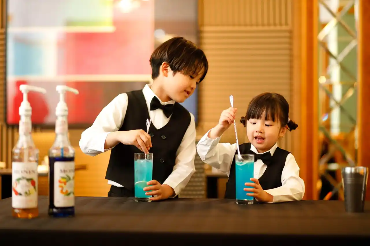 ホテルニューオータニ幕張では、2026年5月3日(日・祝)、4日(月・祝)の2日間限定で、お子さまがホテリエ(ホテルスタッフ)に変身してホテルのお仕事を体験できる宿泊プラン『キッズホテリエ体験宿泊プラン』を販売いたします。ベルスタッフとして家族をご案内したり、バーテンダーとしてモクテル(ノンアルコールカクテル)を作って振る舞ったり。本物のホテルを舞台にした“お仕事体験”を通して、一生の思い出に残る冒険のひとときをお届けします。 |
