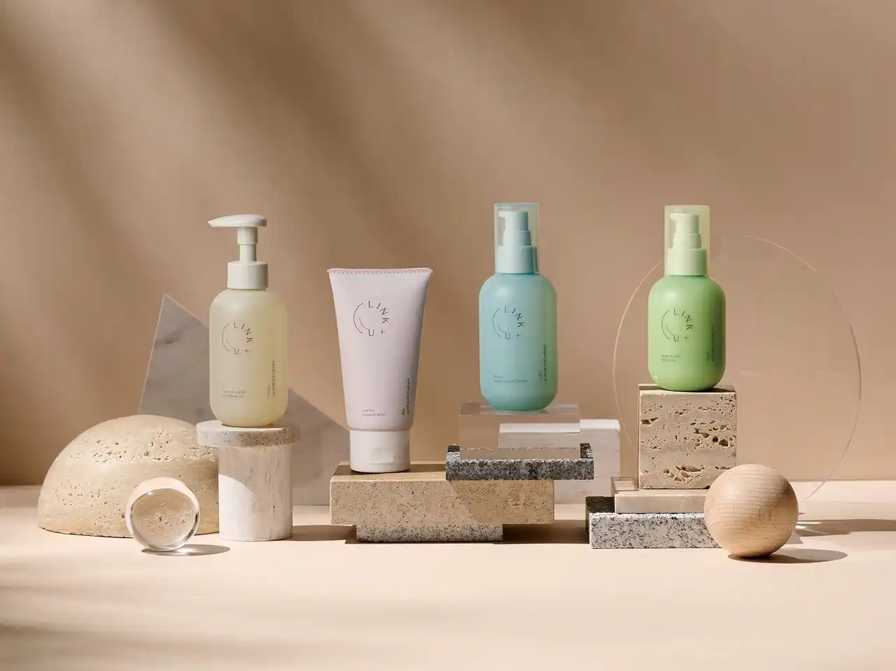 「LINK+U」は、自然由来成分とサイエンスを融合させたスキンケアブランドです。海藻由来成分など自然の恵みを活かした処方を特徴とし、忙しい日常の中でも心地よく使い続けられるスキンケアを提案しています。 |