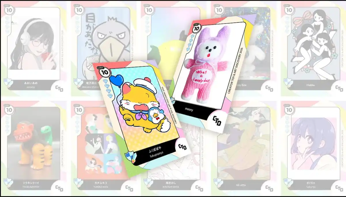 「Creator Toy & Art Discovery 2026 (CTD)」は、世界中に日本のポップカルチャーアイテムを届けるオンラインショッピングサイト「AniMeEon」(アニミオン)が初開催する期間限定のグローバルオンラインマーケットです。「あたらしい発見と探求」をテーマに、国内クリエイター150名以上が参加し、アートトイ、イラスト、雑貨など個性豊かなクリエイターズアイテムを販売します。 |