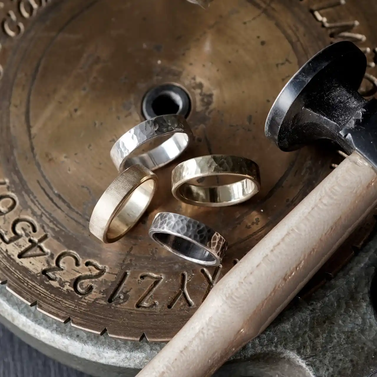 「叩く、刻む。」5mm幅の地金から生まれる、ハンマーテクスチャーのリング |