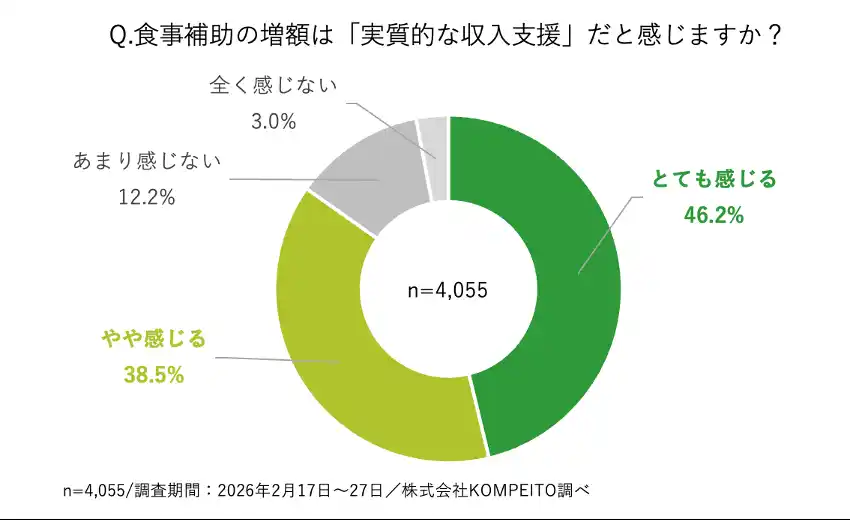 | 3. 食事補助は「実質収入支援」に:84.7%が食事補助を「実質的な収入支援」と捉える | |||