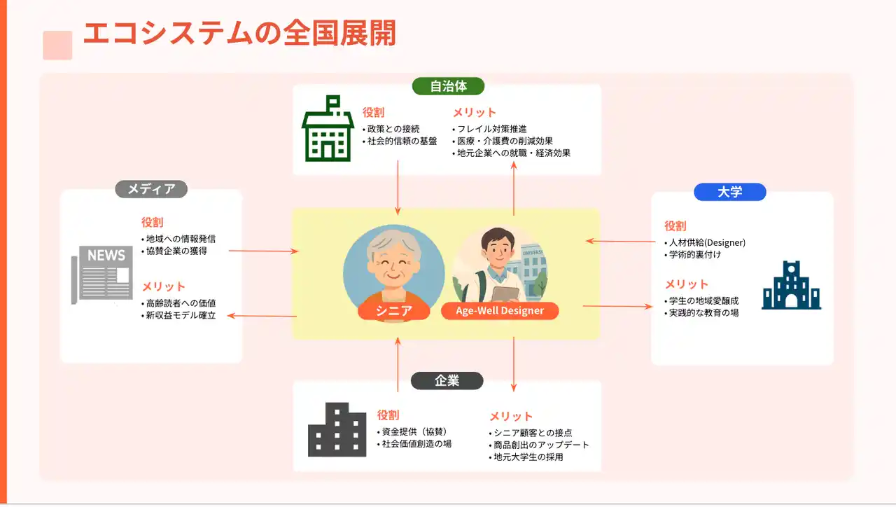 孫世代の相棒による世代間交流サービス「もっとメイト」や、多世代が集う常設型コミュニティ「モットバ!」を展開する株式会社AgeWellJapan(本社:東京都渋谷区、代表取締役社長:赤木円香、以下「AgeWellJapan」)は、加藤修 札幌副市長 、サツドラホールディングス株式会社、株式会社あいプラン、株式会社中日新聞社をお迎えし、2026年4月23日(木)に「Z世代 × 地元企業で描く、地方創生。 産官学民が混ざり合う「多世代共創エコシステム」の作り方」をテーマとした無料ウェビナーを開催いたします。