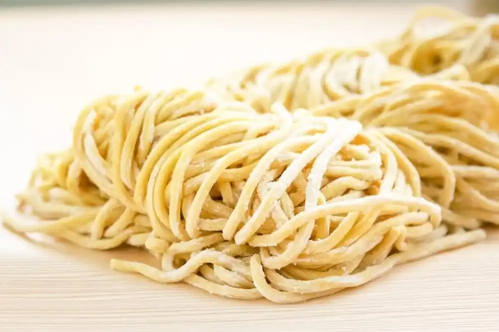 麺は、自社製麺所で手作りする、つるつる・モチモチ食感が特徴の「柿渋麺」を使用。 |