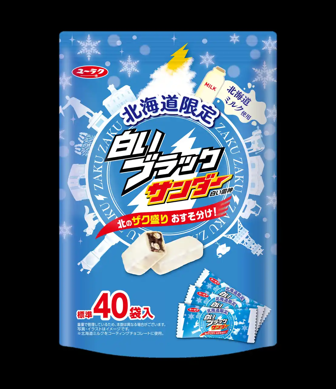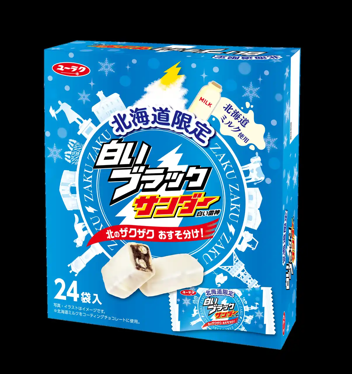 | ミルクの豊かな味わいと食感の強化により、北海道の素材の魅力とブラックサンダーならではの食感をより楽しめる、パワーアップした「白いブラックサンダー」に仕上げました。 | ||||||||||||