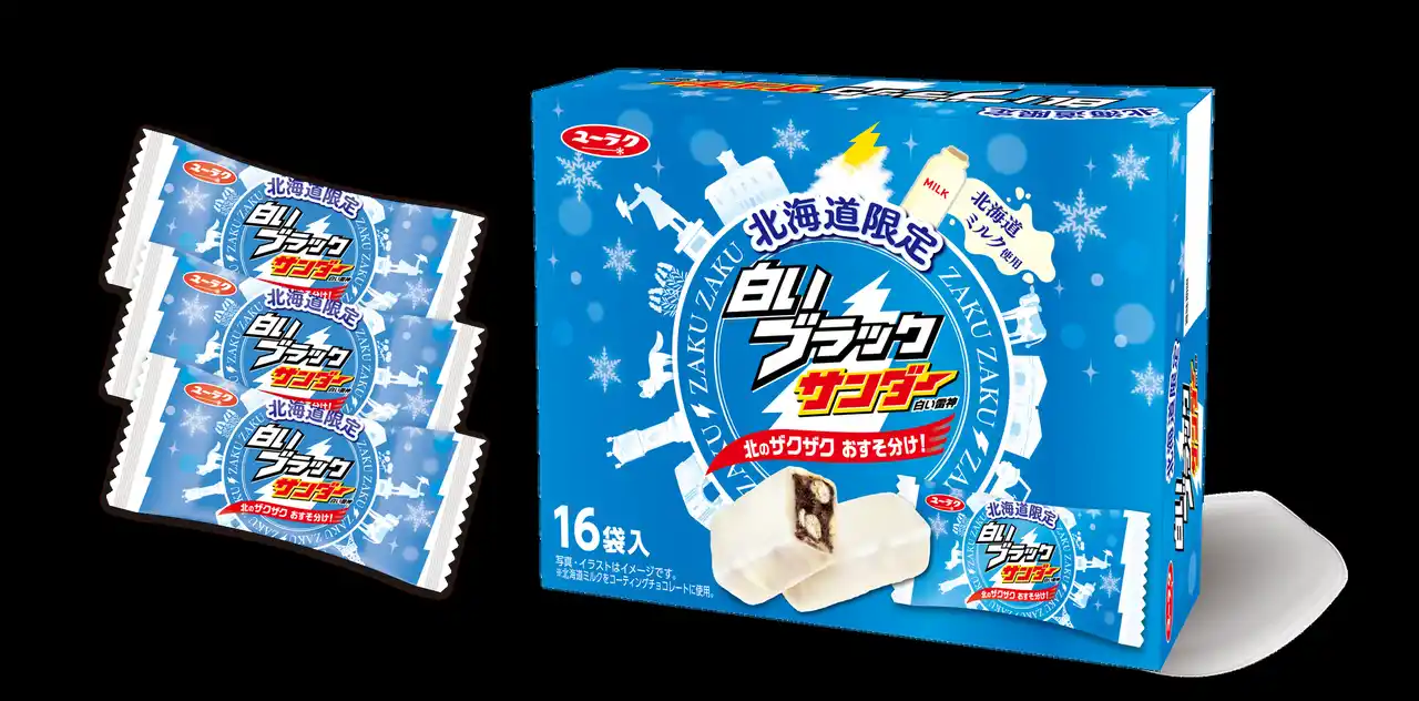 | 有楽製菓株式会社(本社:東京都小平市、代表取締役社長 河合辰信)は、北海道限定商品「白いブラックサンダー」が発売15周年を迎えたことを記念し、商品リニューアルをはじめとした複数のアニバーサリー施策を実施いたします。 | ||||||||||||