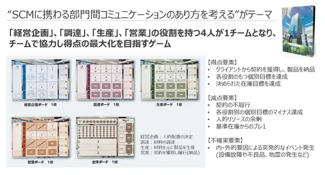 | ●「実業務でも各部門が自分たちにとっての最適を主張することで検討がまとまらず、部門横断での課題解決や会社全体でのメリットが想定される改善が進まないことがある。ゲームでそれが“そのまま起きる”のが印象的でした。」 | |||